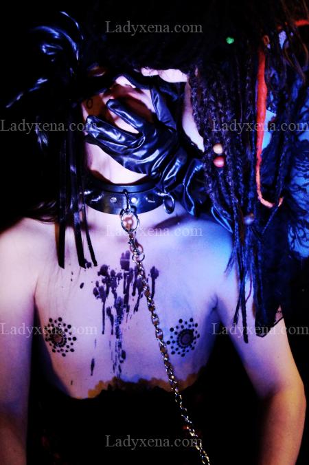 Session au cours de laquelle vous assistez, confortablement attaché et baillonné sur un fauteuil de bureau, à une étrange lap dance masquée, qui évoluera, à la lueur des bougies et enveloppés de sonorité gutturales, vers un strip-tease et un final brûlant ( à savoir que pendant que vous me lécherez les pieds, nous nous masturberons chacun de notre côté, face à face ).