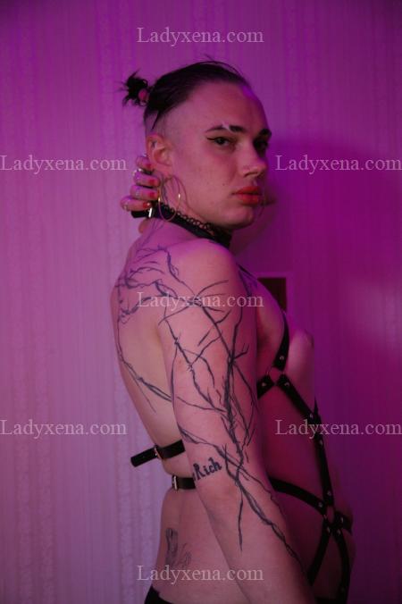 Androgyne, très tatouée au style plutôt punk soigné. Je peux être douce comme violente selon tes envies et demandes.